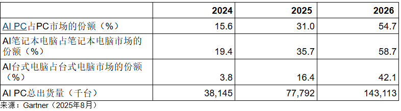 Gartner:到2025年末,AI PC将占全球PC市场份额的31%