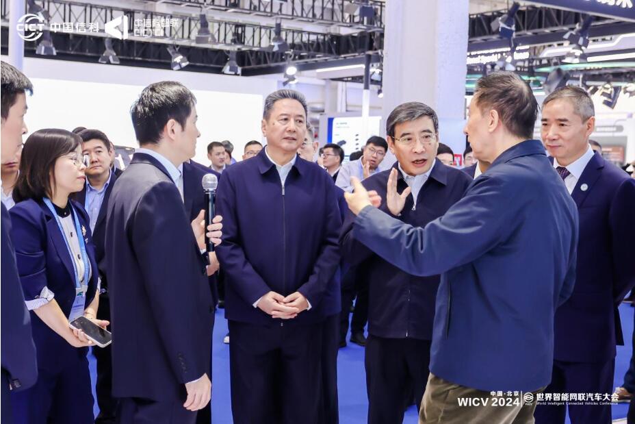展会首日,第二十届中央委员、第十四届全国政协党组成员、副主席王勇,全国政协常委、经济委员会主任王国生,全国政协常委、经济委员会副主任、工业和信息化部原部长苗圩,全国政协常委、经济委员会副主任,交通运输部部长李小鹏,工业和信息化部党组成员、副部长辛国斌等十余位部长组成的部长团莅临中国信科集团展台,听取了中信科智联副总经理范炬关于“车路云一体化”解决方案、车载前装解决方案等方面的实践成果介绍,并给予高度认可。