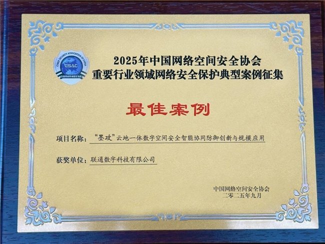 “联通墨攻”入选2025年重要行业领域安全保护最佳案例,引领关键信息基础设施防护新篇章