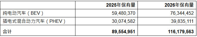 2026年在用电动汽车数量将增长30%,2026年在用插电式混合动力汽车数量将增长32%。